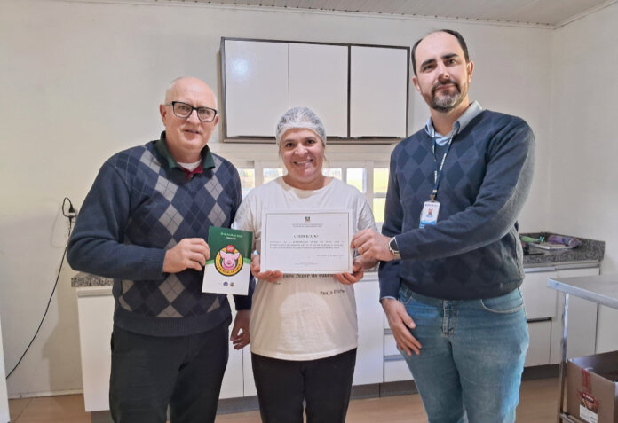 Com o certificado entregue à proprietária Fátima do Amaral, a agroindústria Trufas da Vovó está habilitada a participar de feiras em todo o estado. A entrega foi feita pelo chefe do escritório municipal da Emater, Maurício Dall’Acqua, juntamente com o secretário de Desenvolvimento, Turismo e Inovação, Jonas Gayeski.