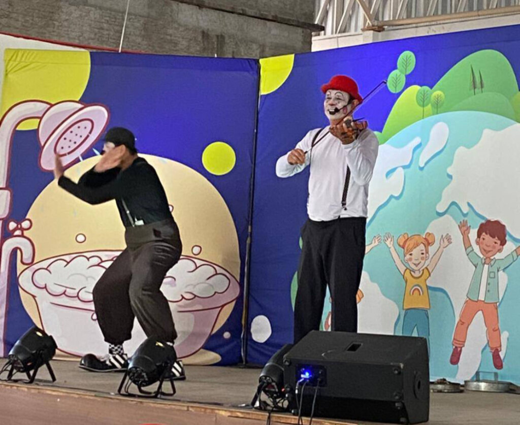 Além do teatro, os alunos receberam kits com sacochila, caderno personalizado, lápis e quebra-cabeça. Também participaram do sorteio de bonecos Coprelito e Coprelita e encerraram o dia com um lanche.