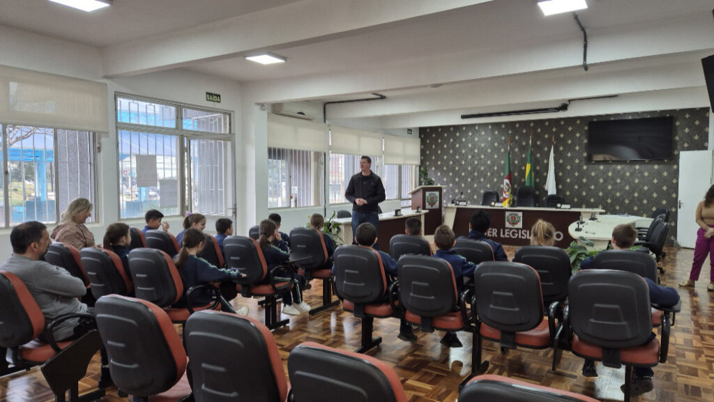 Acompanhados pela professora Rosicler Mattana, os alunos foram recebidos pelo presidente do Legislativo, Eraldo Soccol. Além dele, outros funcionários da Casa Legislativa também acompanharam os estudantes durante toda a visita.