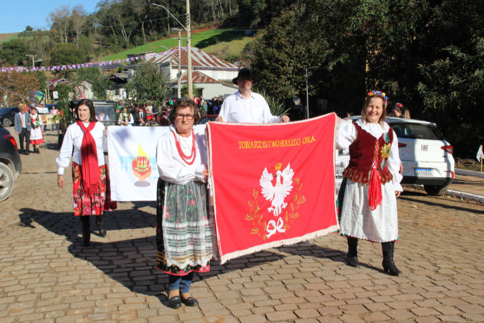 Após a solenidade, o público acompanhou um desfile temático, que percorreu as ruas do distrito apresentando costumes, trajes e cenas do cotidiano dos colonizadores.