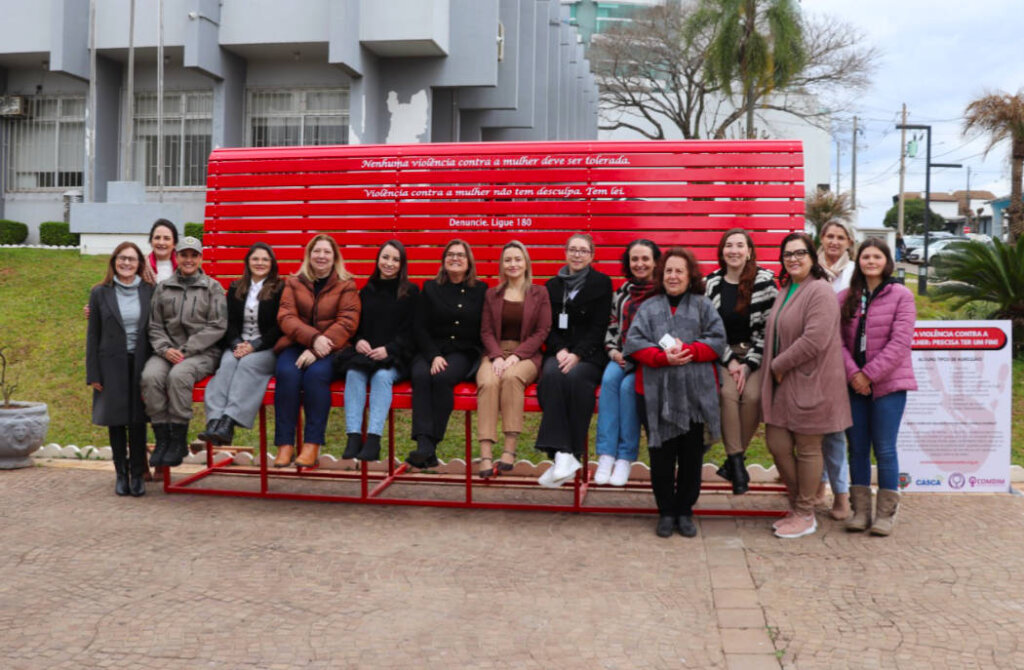 Foi inaugurado em Casca na tarde de segunda-feira, 25 de agosto, o Banco Vermelho, iniciativa que integra a programação do Agosto Lilás e tem como objetivo conscientizar a população sobre a importância de prevenir e combater a violência contra as mulheres. A cerimônia contou com a presença de autoridades e representantes de diversos setores da sociedade.