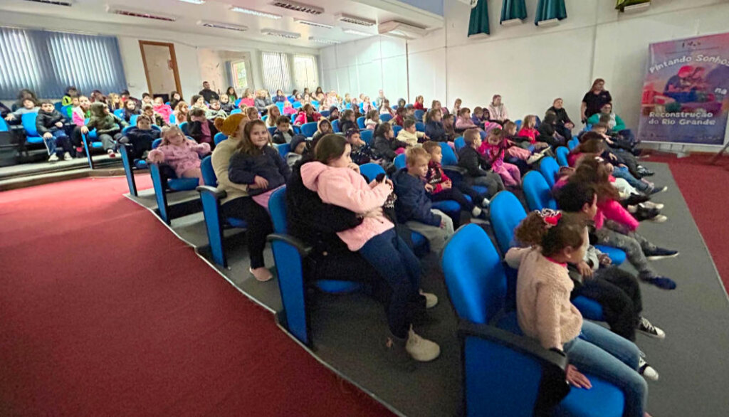 O município de São Domingos do Sul recebeu, na última sexta-feira (5), o espetáculo “Pintando Sonhos”, integrante do projeto de reconstrução do Rio Grande, que promove arte, cultura e inclusão. As apresentações ocorreram na Casa da Cultura Prof. Egídio Benvegnú, em duas sessões, às 10h e às 13h30, reunindo crianças da comunidade.