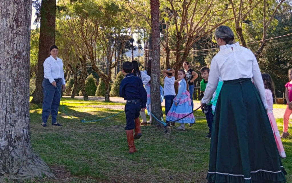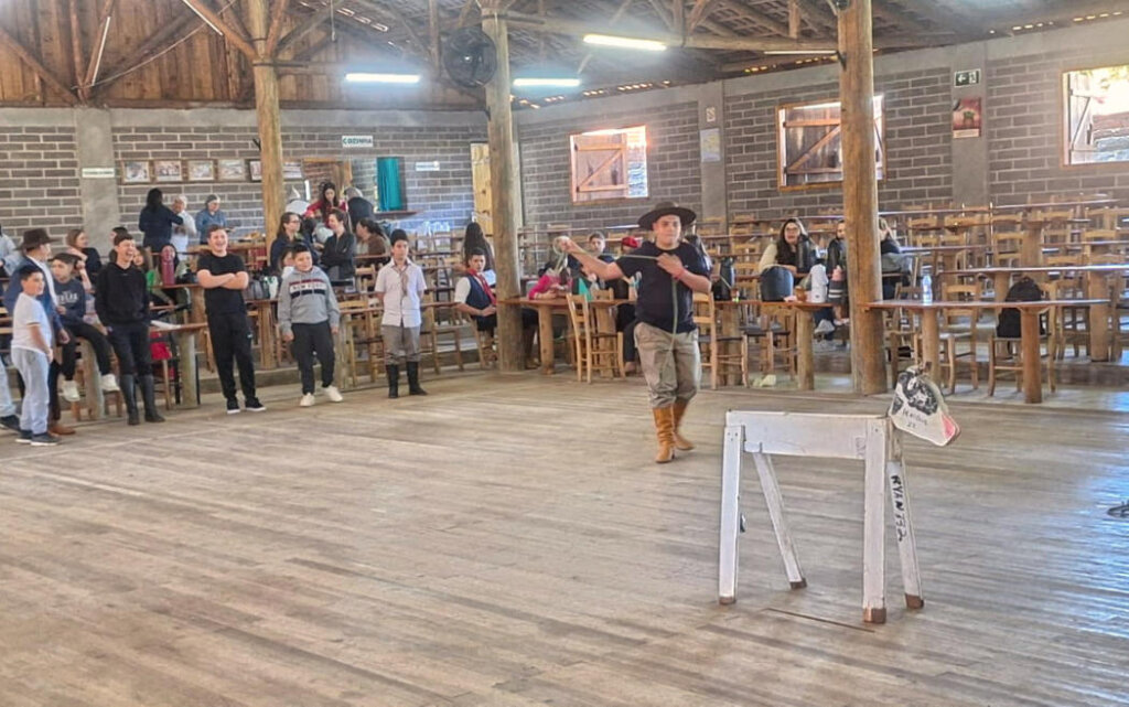 Pela manhã, os estudantes participaram de uma gincana cultural, que teve como objetivo promover integração e valorizar as tradições gaúchas. À tarde, após a apresentação das invernadas artísticas do CTG, foi realizado um circuito de brincadeiras culturais, proporcionando momentos de lazer e aprendizado.