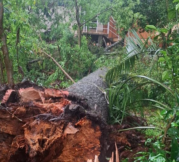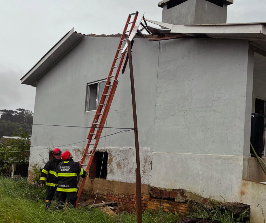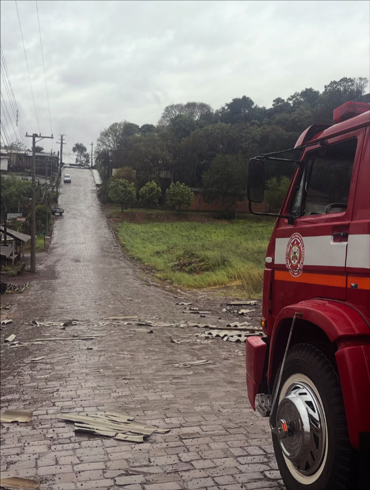 Em Casca, o Serviço Civil Auxiliar de Bombeiros (SCAB) atuou na retirada de árvore que atingiu uma residência e auxiliaram na cobertura emergencial do imóvel, evitando maiores prejuízos ao morador.