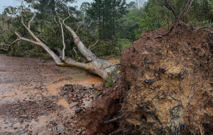 Já em David Canabarro, equipes realizaram a cobertura emergencial de residências no interior e também a desobstrução de estradas comprometidas pela queda de árvores e materiais levados pela ventania.