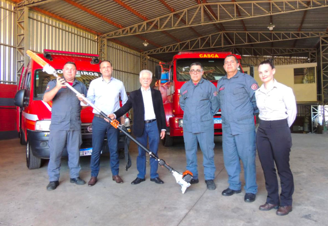 O Serviço Civil Auxiliar de Bombeiro (SCAB) de Casca recebeu, na tarde de terça-feira (14), a doação de uma moto-poda, equipamento que será utilizado em diversas ocorrências e atendimentos realizados pela corporação. O novo instrumento será especialmente útil em ações de corte e remoção de vegetação e desobstrução de vias.