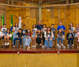 O lançamento da 16ª edição do livro do projeto “Observar, Ler, Pensar para escrever!” marcou, na noite de quinta-feira (4), no CTG Sentinela da Serra, em Vanini, a abertura das comemorações pelos 38 anos de emancipação do município. A iniciativa é desenvolvida pelo professor Vanderley Tibola com alunos do 5º ano da EMEF Gonçalves Dias.
