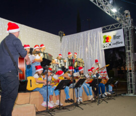 A programação teve início com apresentações da EMEI Pedacinho do Céu e das oficinas de música, que valorizaram o talento local e encantaram o público. Na sequência, o grupo Sistema Antigo conduziu a animação da noite com canções e mensagens que destacaram o verdadeiro significado do Natal.