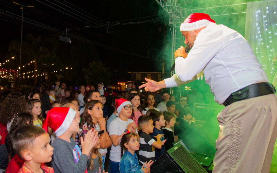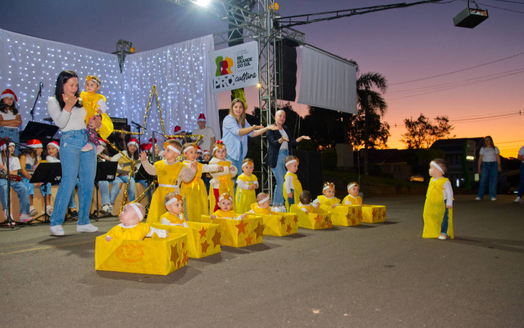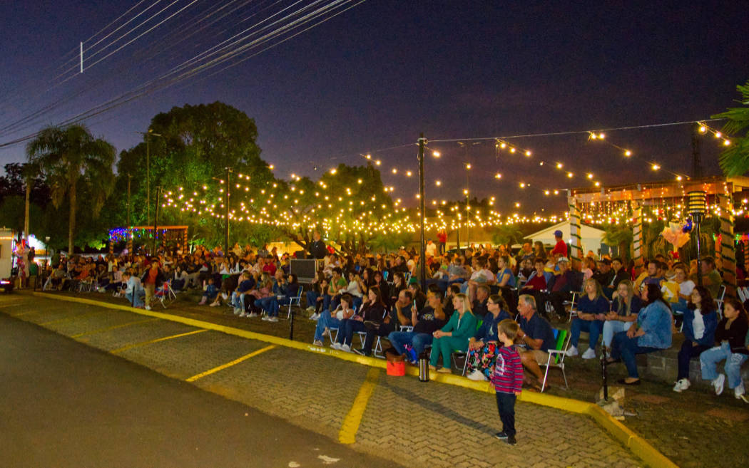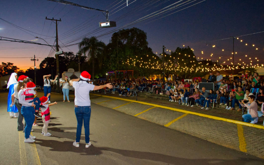 Um dos momentos mais aguardados foi a chegada do Papai Noel, que recebeu simbolicamente a chave da cidade das mãos do prefeito Ereneu Bogoni e da vice-prefeita Marlice Kaffer. Em seguida, o Bom Velhinho distribuiu doces às crianças, levando alegria às famílias presentes.