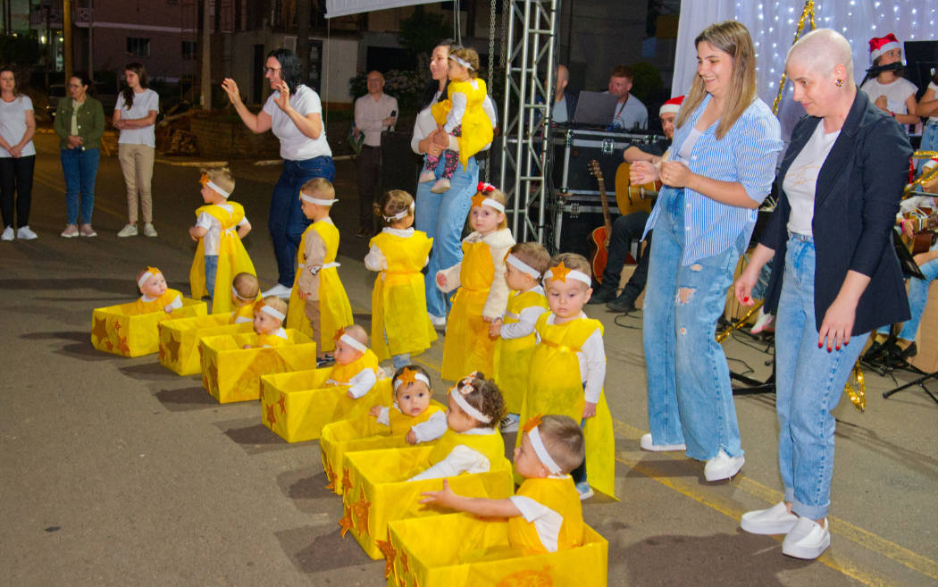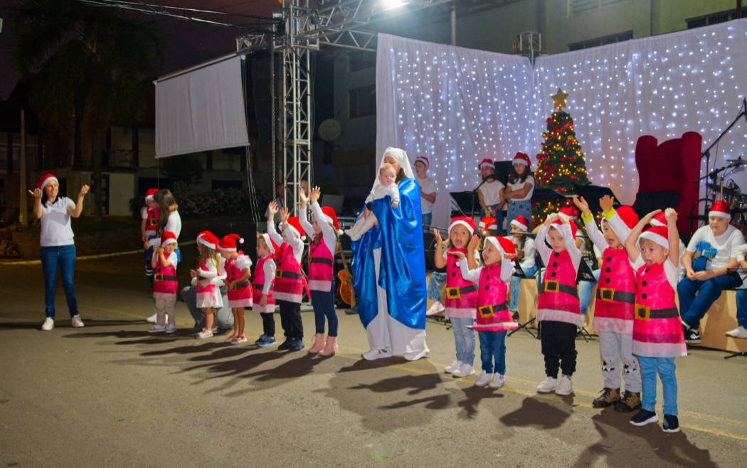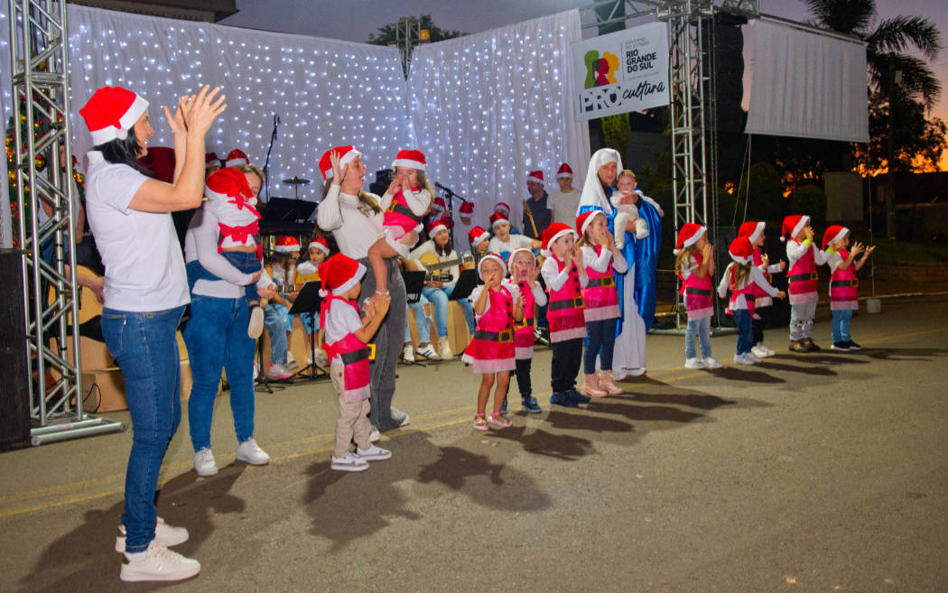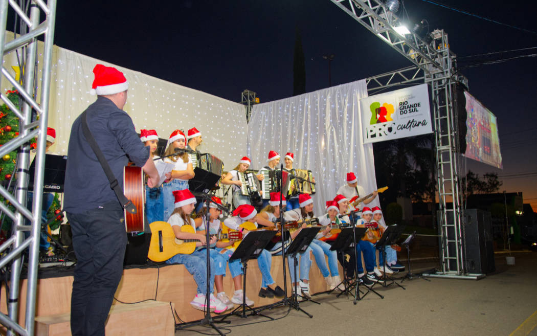 A programação teve início com apresentações da EMEI Pedacinho do Céu e das oficinas de música, que valorizaram o talento local e encantaram o público. Na sequência, o grupo Sistema Antigo conduziu a animação da noite com canções e mensagens que destacaram o verdadeiro significado do Natal.