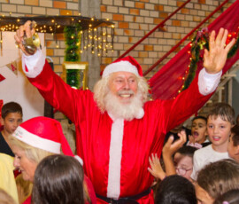 A chegada do Papai Noel foi um dos momentos mais aguardados da noite, encantando as crianças. Após a tradicional entrega de brinquedos aos pequenos canabarrenses, a programação seguiu com o baile animado pela banda Cosmo Express.