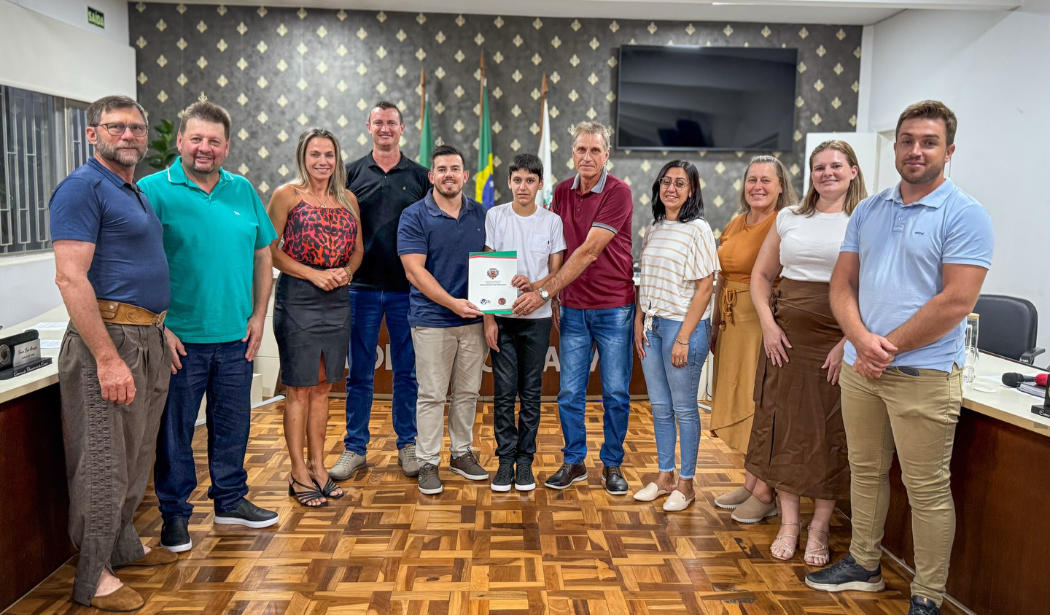 A Câmara de Vereadores de Casca aprovou a Moção de Aplausos nº 01/2026 em reconhecimento ao desempenho acadêmico do estudante Arthur Bordignon. A proposição é de autoria do vereador Arlindo Bordignon.