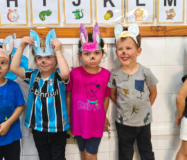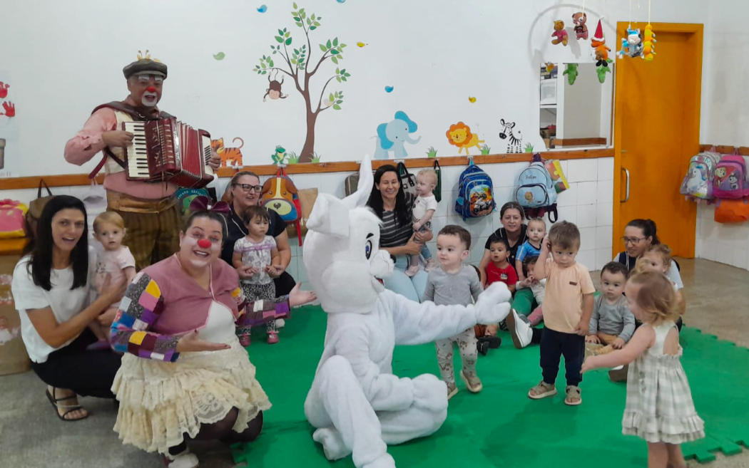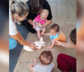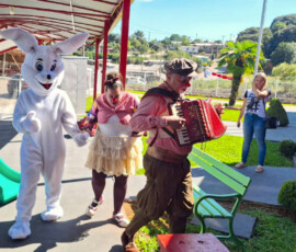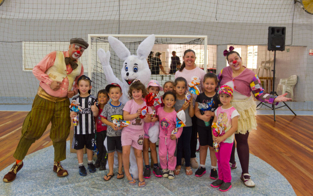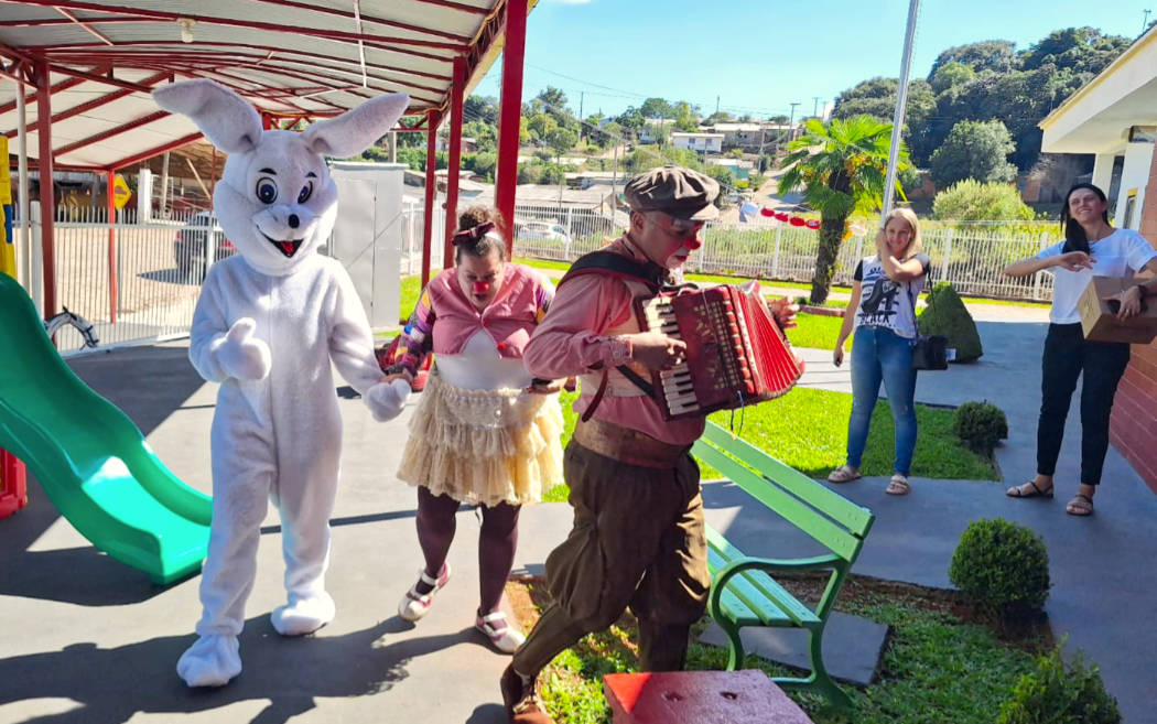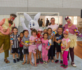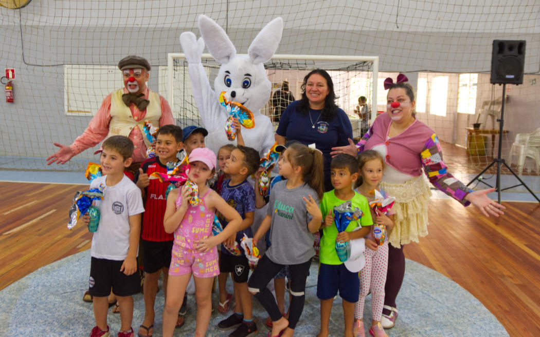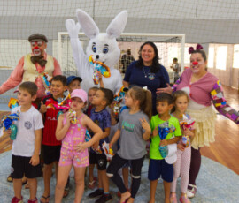 A programação incluiu a entrega de ovos de chocolate, apresentação temática e a participação do Coelhinho da Páscoa, além da presença de coelhos de verdade, que encantaram os alunos.