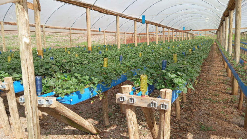 Na mesma estrada, outra iniciativa que chama atenção é o cultivo de morangos em estufas. A agricultora Francinara Deon, que trabalhava no meio urbano, investiu na produção protegida, com vendas realizadas diretamente na cidade e em mercados locais. “Voltar para a agricultura sempre é um desafio, mas estou enfrentando com a ideia de continuidade e possibilidade de novas iniciativas”, relata.