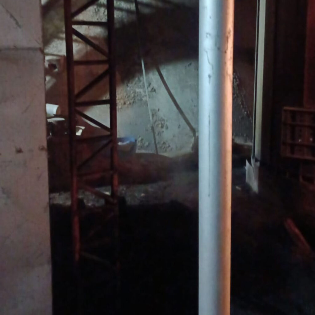 Um incêndio atingiu um silo na madrugada desta quarta-feira (22), em São Domingos do Sul, às margens da ERS-129.